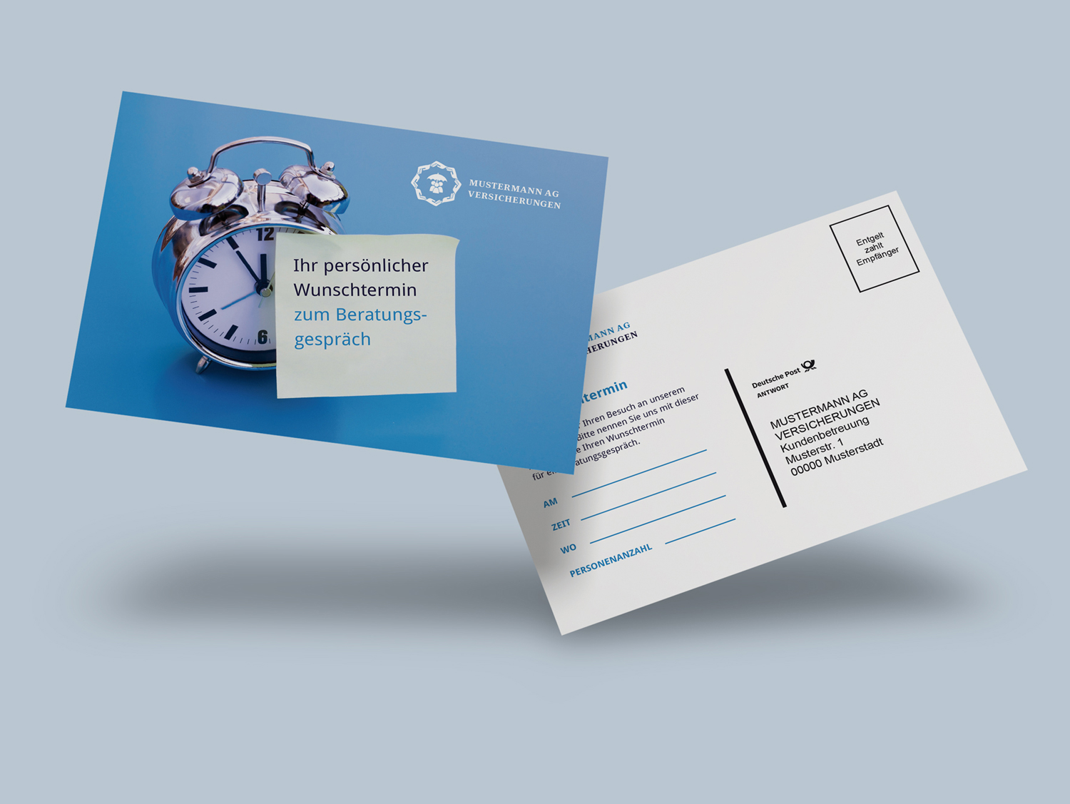 - Gestalten Sie Ihr Werbemittel, ob Postkarte oder Flyer/Anschreiben im Briefumschlag.